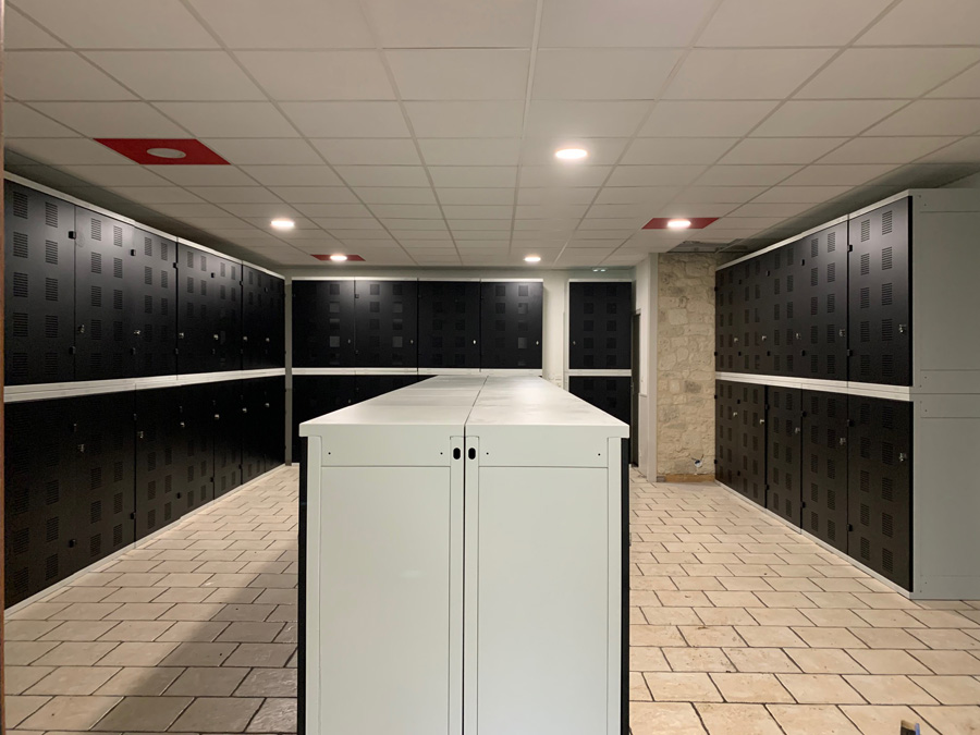Nouvelle installation de 62 casiers 1250x850x550 mm au Golf d'Uriage dans une couleur Noir/Blanc avec un système turning lock(sans clefs)avec des casiers hauts et bas et des portes avec ouverture à ga...