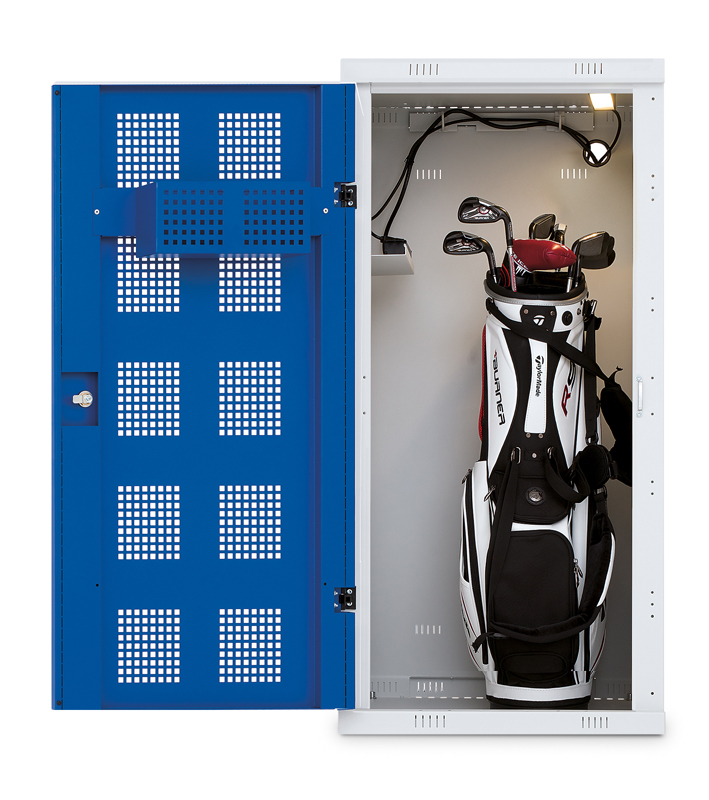 Nouvelle installation de 62 casiers 1250x850x550 mm au Golf d'Uriage dans une couleur Noir/Blanc avec un système turning lock(sans clefs)avec des casiers hauts et bas et des portes avec ouverture à gauche ou droite, pour s'adapter parfaitement au local dédié.