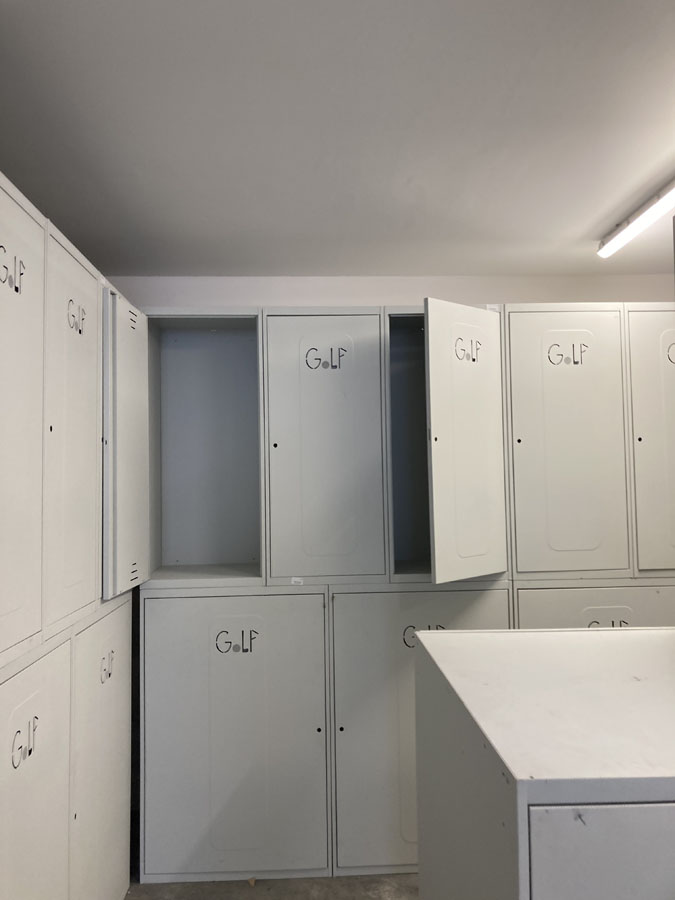 Nouvelle installation de 62 casiers 1250x850x550 mm au Golf d'Uriage dans une couleur Noir/Blanc avec un système turning lock(sans clefs)avec des casiers hauts et bas et des portes avec ouverture à ga...